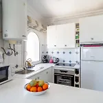 Eine voll ausgestattete Küche mit einem Wasserkocher, einem Kühlschrank und Küchenutensilien gehört zur Ausstattung des Apartments Stella Maris Beachfront 3A By Casasol für Selbstversorger. Die nächstgelegene Bushaltestelle Hotel Monica befindet sich in unmittelbarer Nähe vom Apartment.